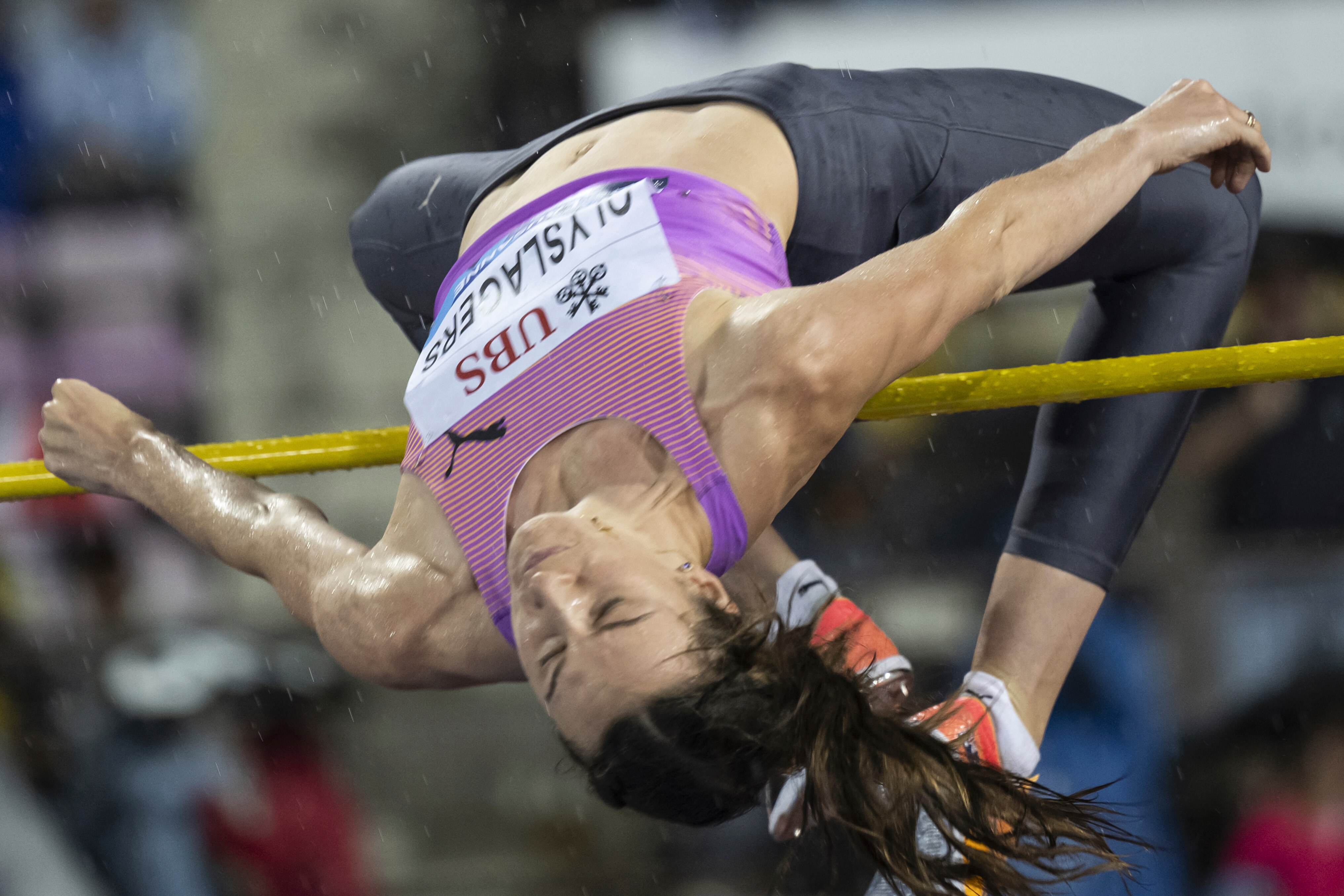 Australian Nicola Olyslagers has defied the teeming rain to swan over the bar with only one certain and win her third Diamond League excessive bounce in a row.