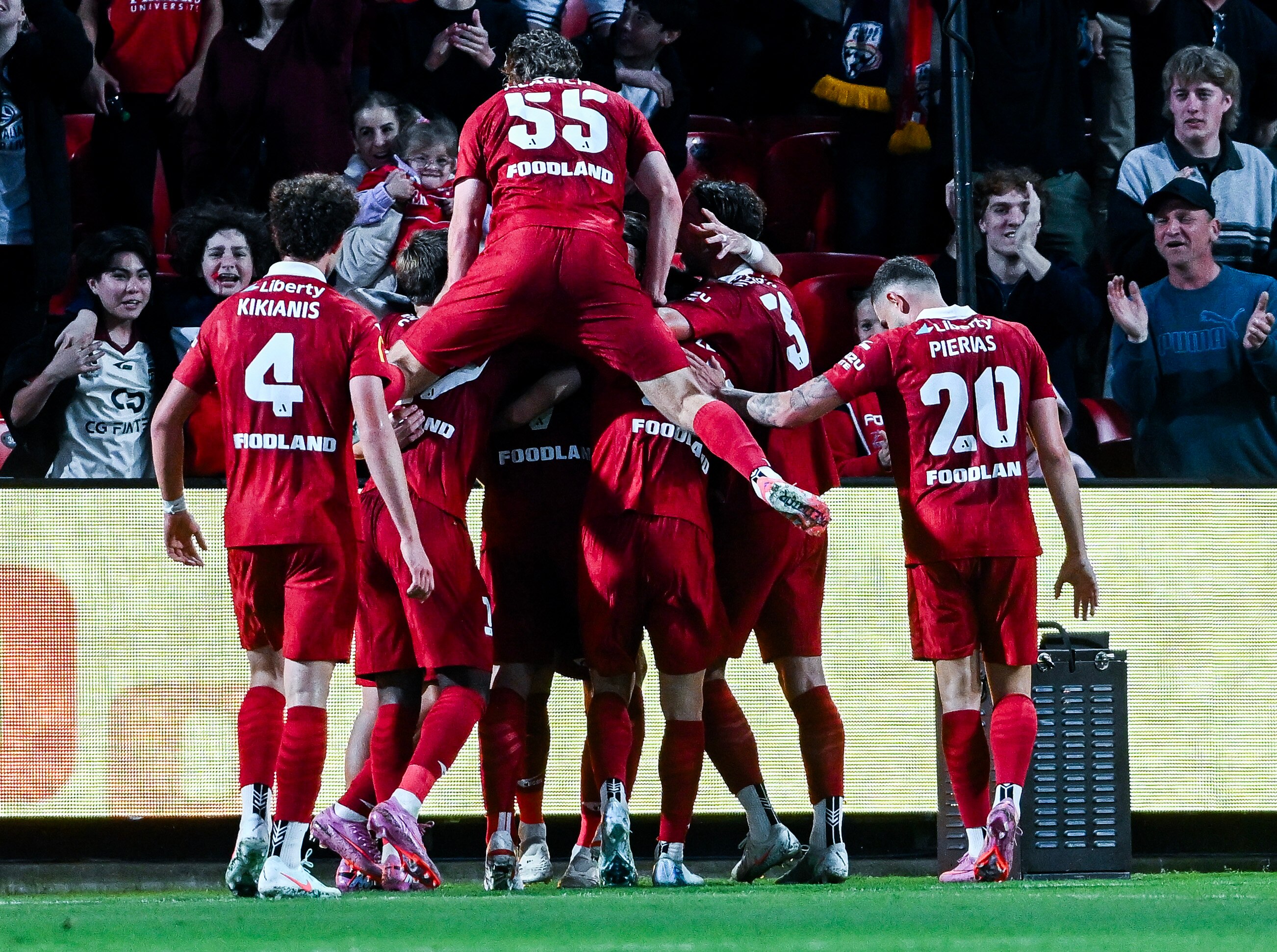 Returning skipper and Adelaide veteran Craig Goodwin teed up former skipper Ryan Kitto for the opener on 55 minutes earlier than Ethan Alagich doubled the lead 10 minutes later following a dominant first half from Adelaide.