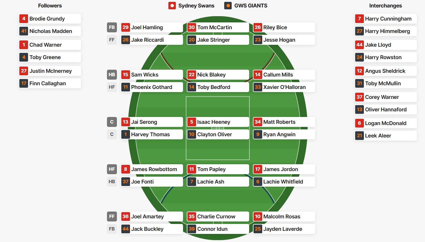 Groups are in for Swans vs Giants