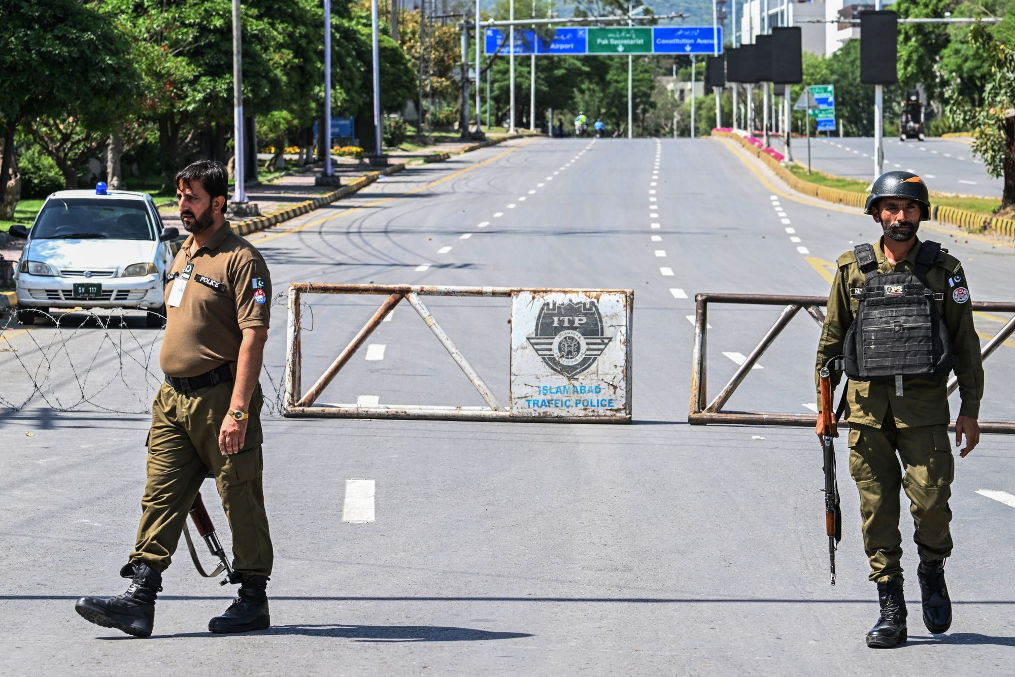 Police personnel have been seen standing guard at a closed street resulting in the Serena Lodge within the Crimson Zone space of Islamabad on Sunday.