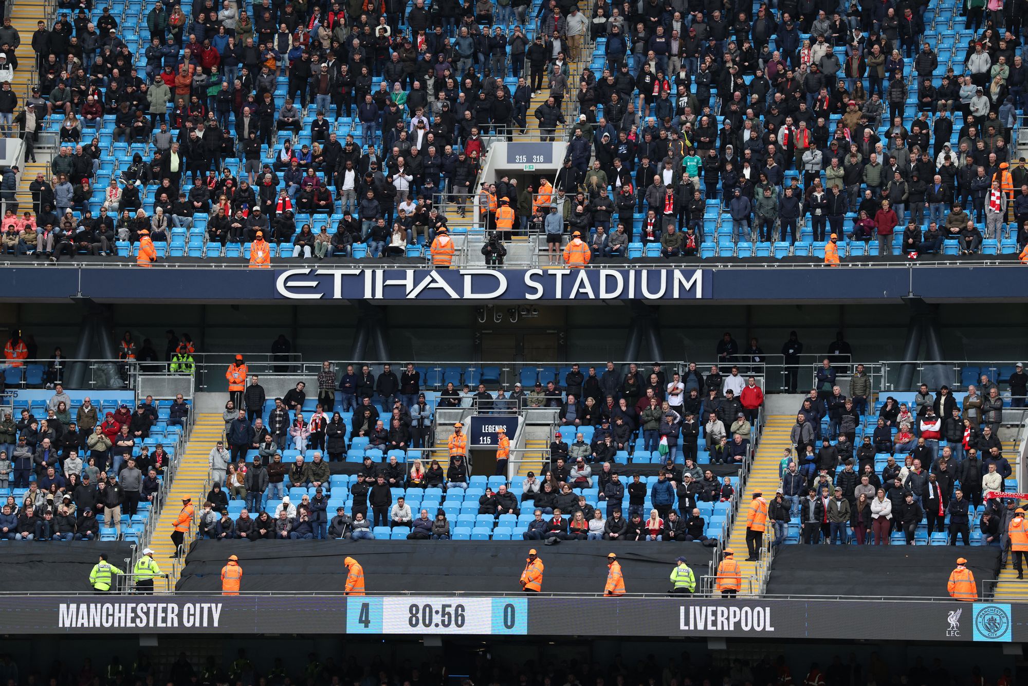 86 minutes: There are lot of empty seats within the Liverpool away finish. Many left when Haaland accomplished his hat-trick earlier than the hour.